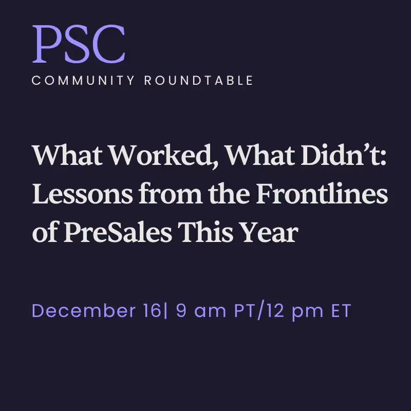 All members can access any of our free resources including Slack, the newsletter, the blog, the Presales Podcast, virtual webinars and events, and in-person dinners and events. Pro and Pro+ members have additional resources available including enablement resources, private roundtables, and access to workshop events.