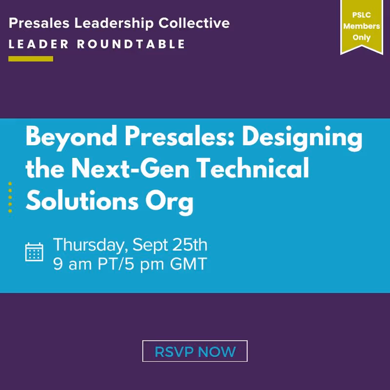 Presales Leadership Collective is for Pro+ members who lead other presales professionals at their organizations. Members receive access to private Slack channels and leadership events designed specifically for them.